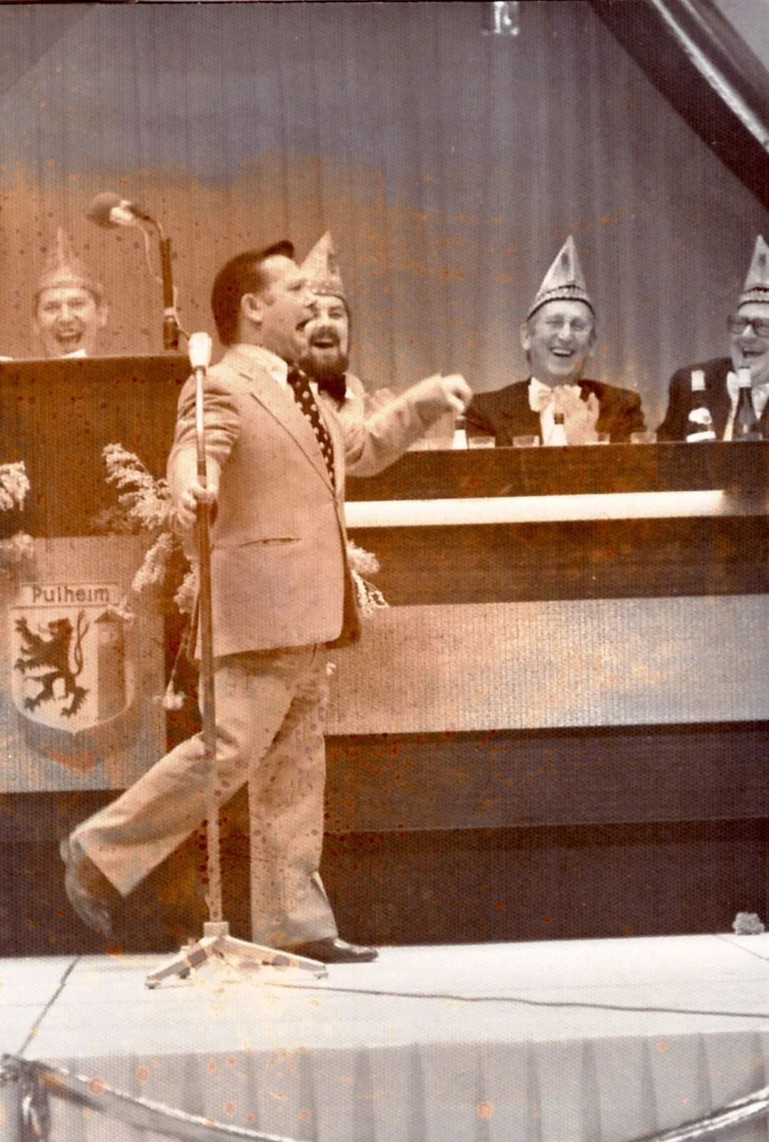 ca. 1978 - Jonny Buchardt auf der Bühne der Brauweiler Prunksitzung / Brauweiler Karnevalsfreunde 1978 e.V.